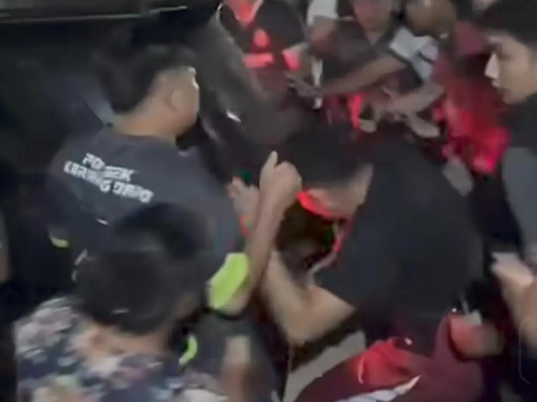 Melihat suasana yang tak lagi kondusif, petugas langsung menangkap tersangka, dan memasukkannya ke dalam mobil untuk dibawa ke Polsek Karang Dapo.