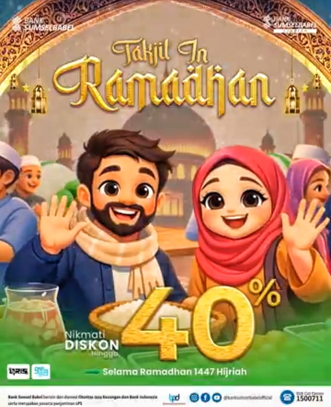 Palembang — Dalam rangka menyambut bulan suci Ramadhan 1447 Hijriah, Bank Sumsel Babel (BSB) menghadirkan program spesial bertajuk “Takjil in Ramadhan”, dengan penawaran diskon hingga 40 persen di berbagai merchant pilihan.