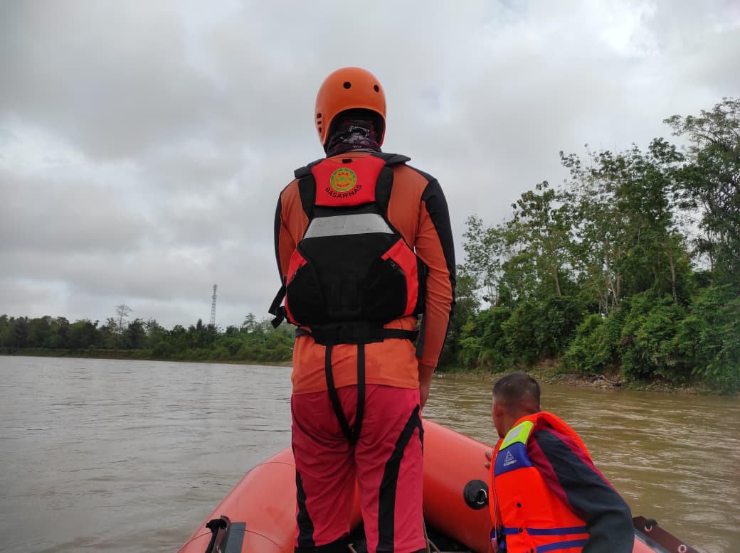 Pencarian difokuskan pada penyisiran permukaan air menggunakan perahu karet serta penyebaran informasi kepada masyarakat di sepanjang bantaran sungai guna mempercepat penemuan korban.
