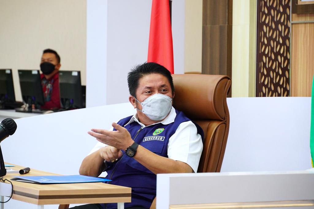 Gubernur Sumatera Selatan Herman Deru secara vitual menghadiri Rapat Koordinasi (Rakor) Perluasan Pemanfaatan Bela (Belanja Langsung) Pengadaan dalam rangka pencegahan korupsi pengadaan di selenggarakan oleh Komisi Pemberantasan Korupsi (KPK) RI bertempat di Command Center Kantor Gubernur, Jumat (7/5) pagi.