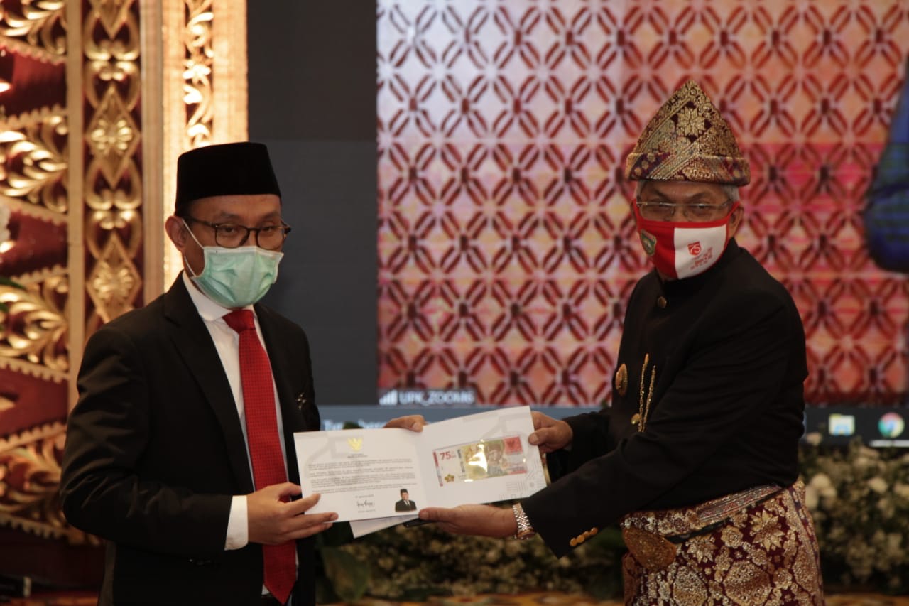 Palembang – Masih dalam rangkaian Hari Kemerdekaan Republik Indonesia ke-75 Tahun, Gubernur Provinsi Sumatera Selatan (Sumsel)  H. Herman Deru didampingi oleh Wakil Gubernur Provinsi Sumsel Mawardi Yahya beserta Forkompinda Provinsi Sumsel, mengikuti Peresmian pengeluaran uang baru melalui aplikasi zoom di Griya Agung (17/8) Siang.
