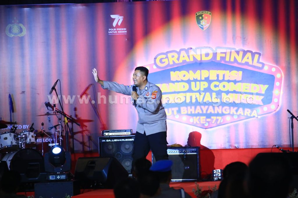 Jakarta – Kepolisian Negara Republik Indonesia ( Polri ) menyelenggarakan grand final kompetisi stand-up comedy dan festival musik dalam rangka HUT Bhayangkara ke-77.