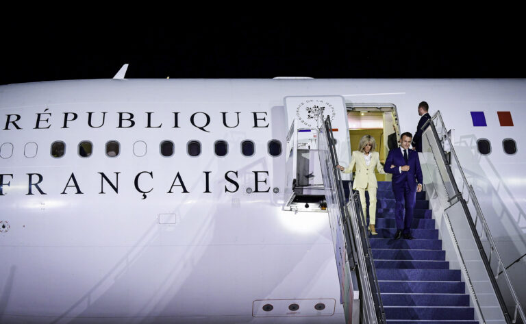 Presiden Macron diketahui telah tiba di Jakarta sekitar pukul 22.00 WIB bersama Ibu Negara Brigitte Macron dan delegasi resmi.