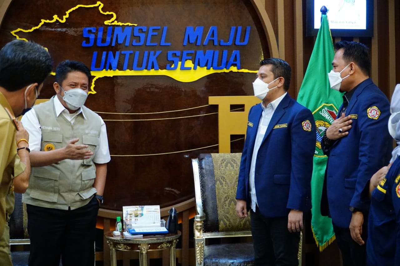 Di hari pertama kerjanya pada bulan suci Ramadhan 1442 Hijriah, Gubernur Sumsel Herman Deru mengisi kegiatannya dengan menerima audiensi pengurus Karang Taruna Provinsi Sumsel, di ruang tamunya, Selasa (13/4). Audiensi ini salah satunya membahas soal rencana pelaksanaan pengukuhan kepengurusan Karang Taruna Provinsi Sumsel Periode 2020-2025.