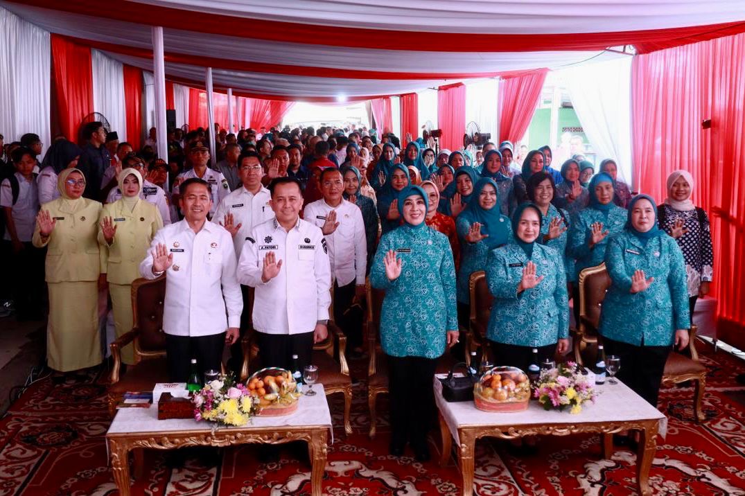 Palembang. Ketua Umum Tim Penggerak Pemberdayaan dan Kesejahteraan Keluarga (TP PKK) Pusat Tri Tito Karnavian bersama Pj Gubernur Agus Fatoni melaunching tiga Gerakan Serentak sekaligus.