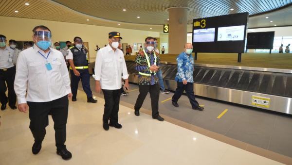 Menteri Perhubungan (Menhub), Budi Karya Sumadi meninjau penerapan protokol kesehatan dalam bertransportasi secara disiplin sebagai upaya mendukung pariwisata Bali.