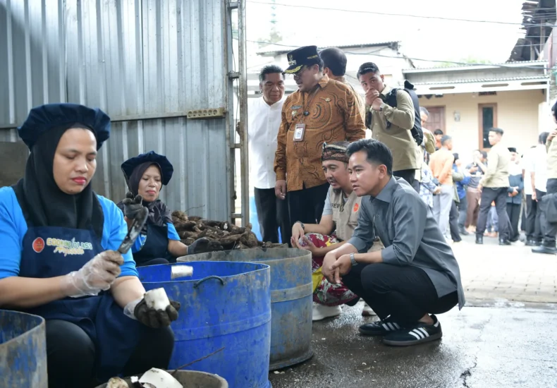 Melanjutkan rangkaian kunjungan kerjanya di Provinsi Jawa Tengah, Wakil Presiden (Wapres) Gibran Rakabuming mengunjungi Kampung Singkong, sentra inovasi dan pemberdayaan ekonomi masyarakat berbasis produk olahan singkong, di Kelurahan Ledok, Kecamatan Argomulyo, Salatiga, Jumat (07/11/2025).