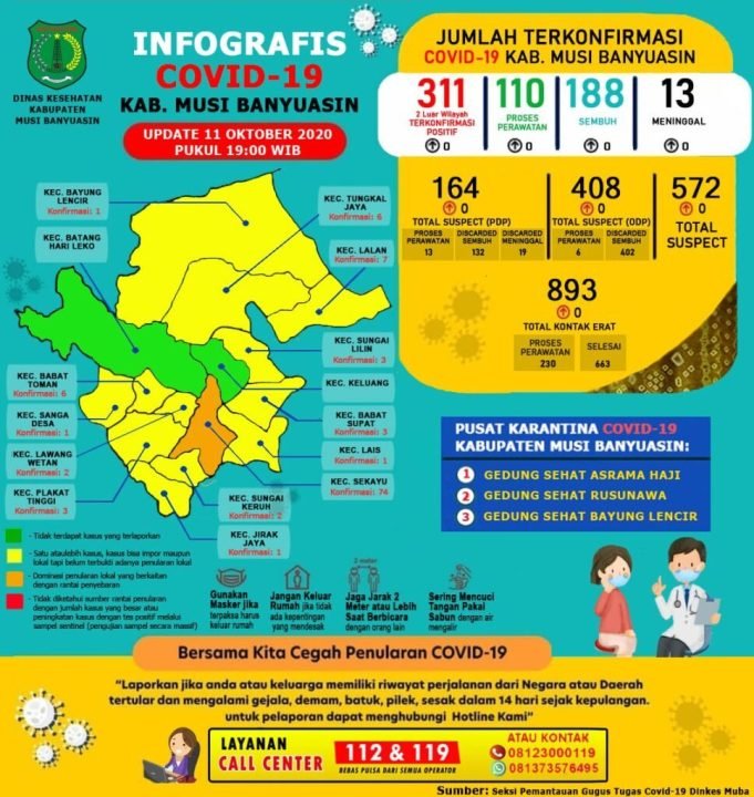 Povi mencatat hingga 11 Oktober 2020 ada sebanyak 311 kasus terkonfirmasi di Muba. “188 kasus sembuh, 13 meninggal dunia, dan 110 orang masih dirawat,” terangnya.