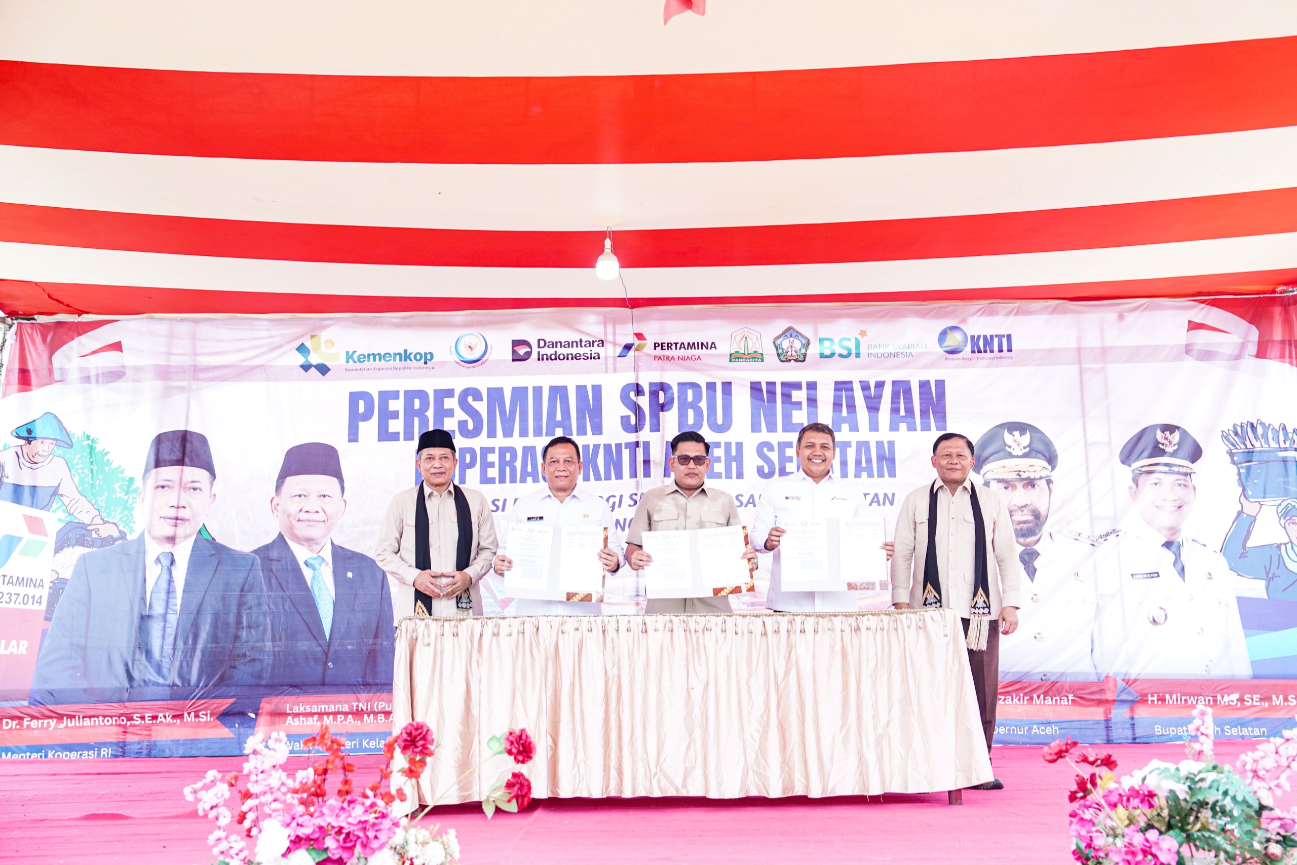 Aceh Selatan – Sebagai upaya mendorong pemerataan energi dan peningkatan ekonomi masyarakat pesisir, sekaligus mendukung program Koperasi Desa/Kelurahan Merah Putih (KDMP), Pertamina Patra Niaga bersama Kementerian Koperasi serta Kementerian Kelautan dan Perikanan meresmikan Stasiun Pengisian Bahan Bakar Umum Nelayan (SPBUN) di Kecamatan Bakongan Timur, Kabupaten Aceh Selatan, pada Selasa (28/04).