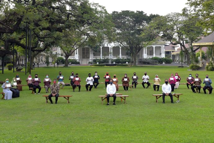 “Semoga dengan bantuan ini nantinya Bapak-Ibu bisa menambah dagangannya, omsetnya juga bisa laku lebih baik,” tutur Presiden Jokowi.