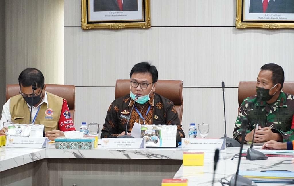 Rapat dibuka oleh Sekretaris Daerah Sumsel H Nasrun Umar dan dipimpin oleh Lo Gugus Tugas Covid 19 Antoni Simamora.