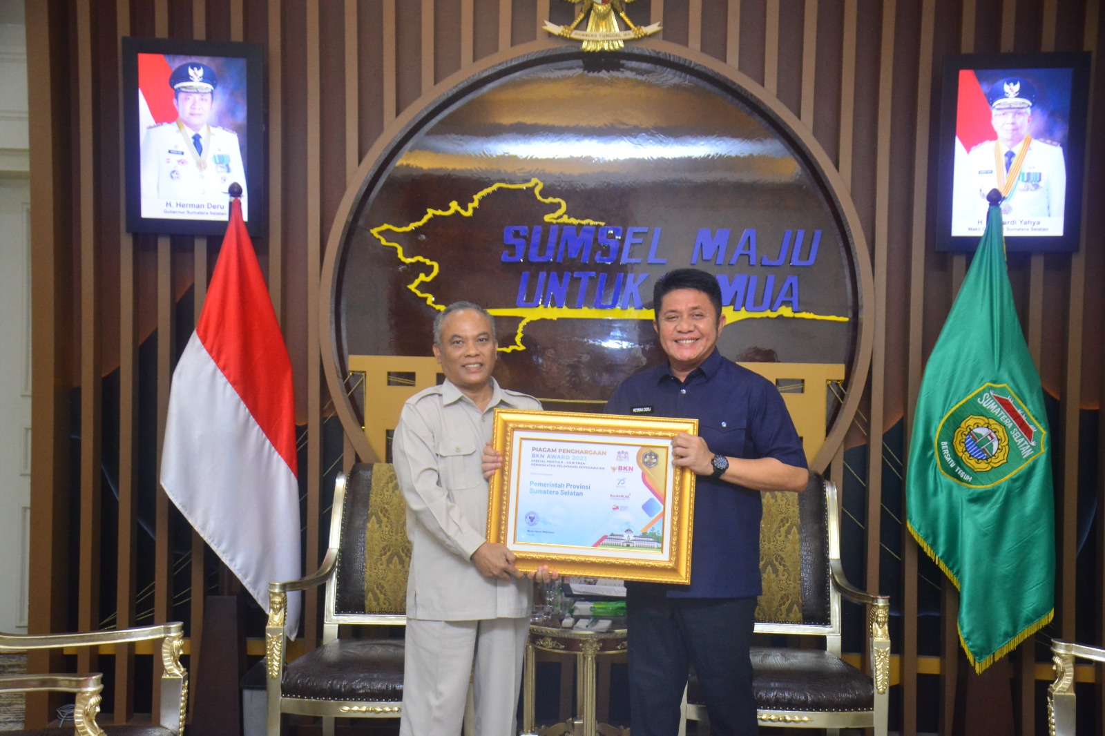 PALEMBANG – Pemerintah Provinsi Sumatera Selatan (Sumsel)  di bawah komando Gubernur Herman Deru dan Wakil Gubernur Mawardi Yahya kembali untuk ketiga kalinya mendapatkan penghargaan ditingkat nasional dalam ajang Badan Kepegawaian Negara (BKN) Award tahun 2023.
