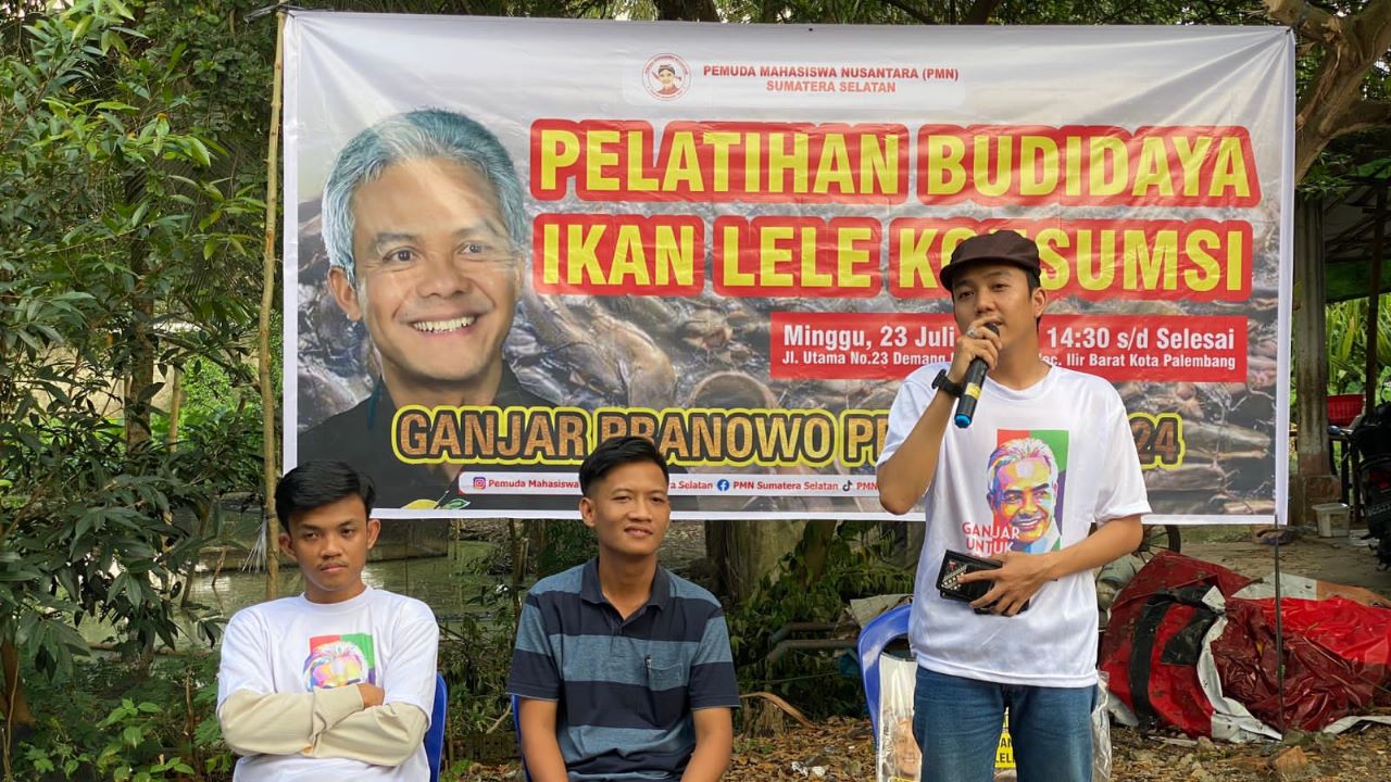 Sukarelawan Ganjar Pranowo yang tergabung dalam Pemuda Mahasiswa Nusantara (PMN) Sumatera Selatan menggelar pelatihan budi daya ikan lele di jalan Utama, Kelurahan Demang Lebar Daun, Kecamatan Ilir Barat, Kota Palembang, Rabu (17/08/2023).