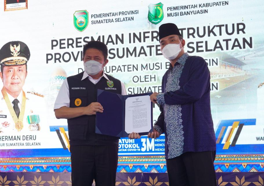 MUBA – Gubernur Provinsi Sumsel, Herman Deru meresmikan sejumlah infrastruktur yang dibangun menggunakan APBD Provinsi di Kabupaten Musi Banyuasin (Muba).