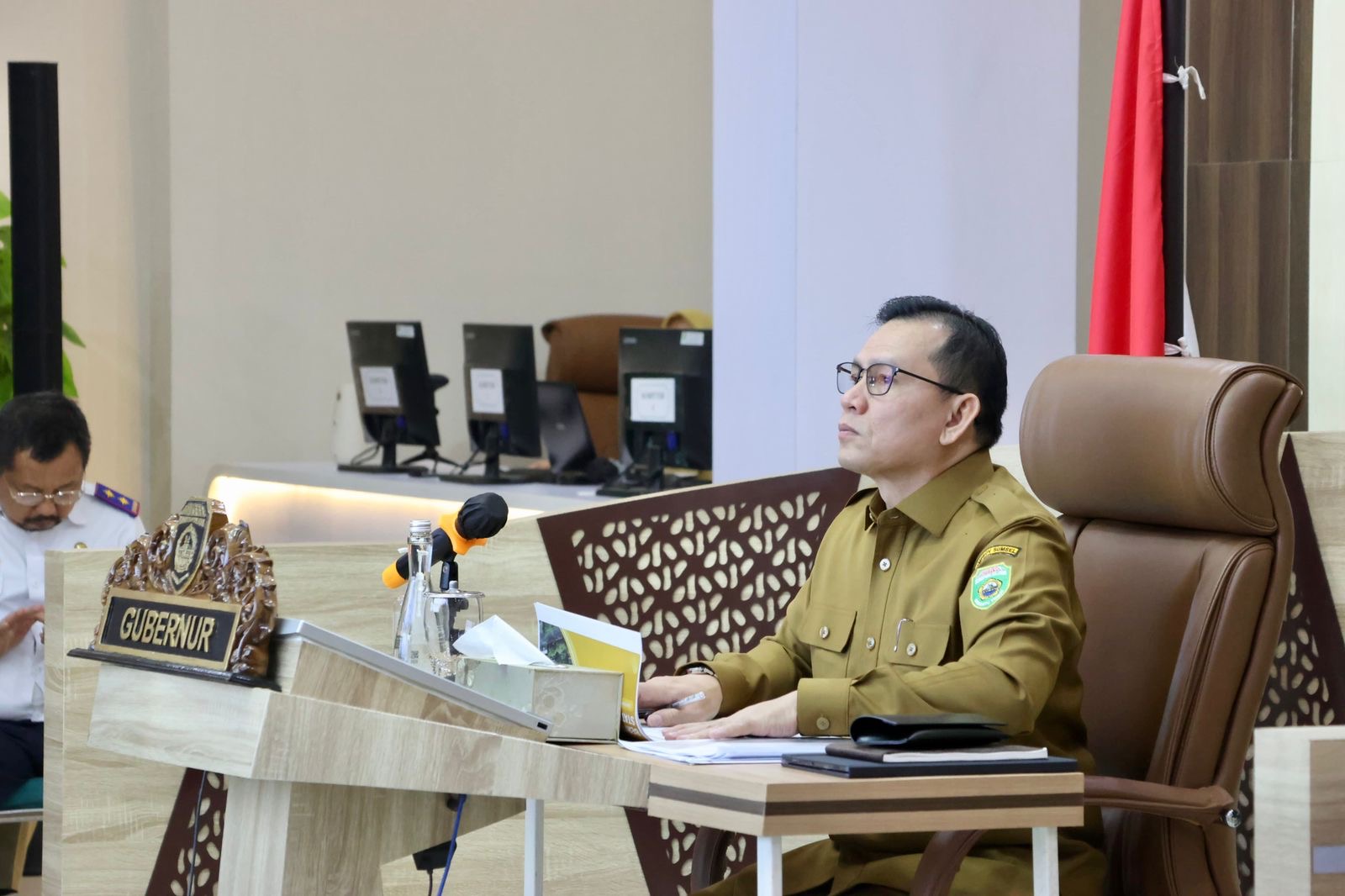 Palembang – Penjabat Gubernur Sumsel Elen Setiadi, SH. MSE mengikuti rapat koordinasi (Rakor) Pengendalian Inflasi di Daerah Tahun 2024 diselenggarakan Kementerian Dalam Negeri (Kemendagri) melalui zoom meeting dari Command Center Kantor Gubernur Sumsel, Selasa (3/9/2023).