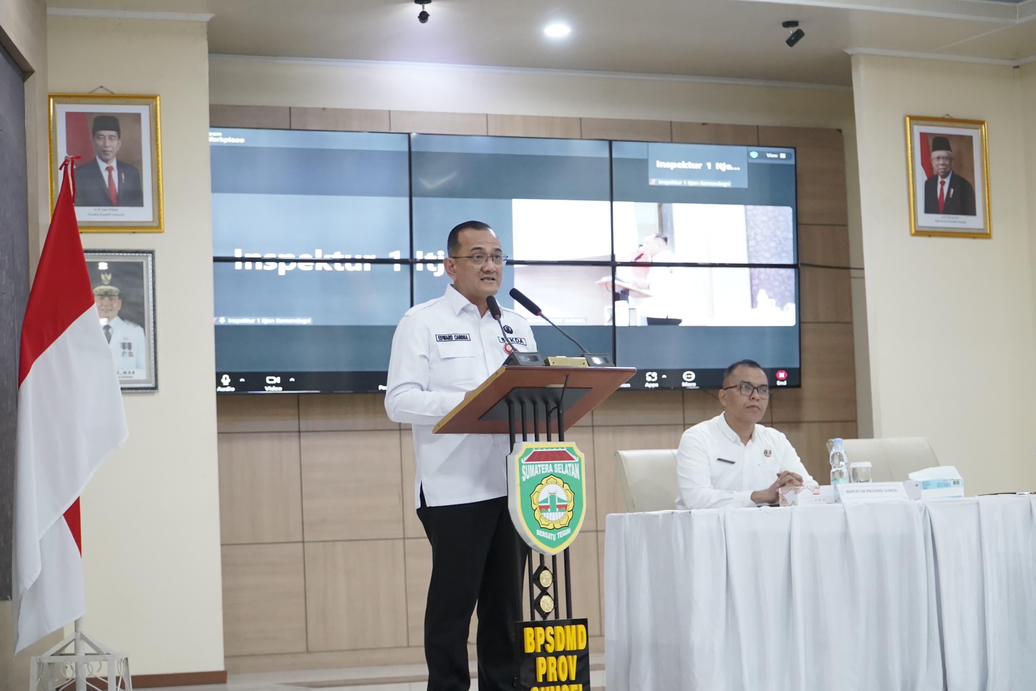 Palembang. Penjabat (Pj) Sekretaris Daerah (Sekda Provinsi Sumatera Selatan (Sumsel) Drs H Edward Candra, MH menghadiri pembukaan Bimbingan Teknis (Bimtek) Reviu Rencana Kerja Anggaran (RKA) berbasis Sistem Informasi Pemerintahan Daerah (SIPD) melalui aplikasi e-Reviu tahun 2024, bertempat di Aula BPSDM Provinsi Sumsel, Rabu (31/7/2024).