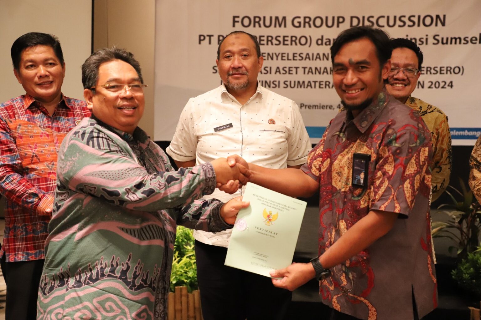 PT PLN (Persero) dan Badan Pertanahan Nasional (BPN) Provinsi Sumatera Selatan menggelar Focus Group Discussion (FGD) Penyelesaian Permasalahan Sertifikasi Aset Tanah PT PLN (Persero) di Hotel Santika Premier Palembang, Kamis (04/01).
