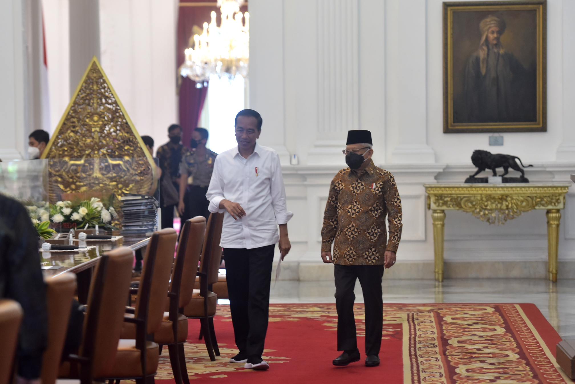 Presiden RI Joko Widodo (Jokowi) memimpin rapat bersama jajarannya yang secara khusus membahas mengenai visa on arrival (VoA) dan Kartu Izin Tinggal Terbatas (Kitas). Rapat tersebut digelar di Istana Merdeka, Jakarta, Jumat (09/09/2022).