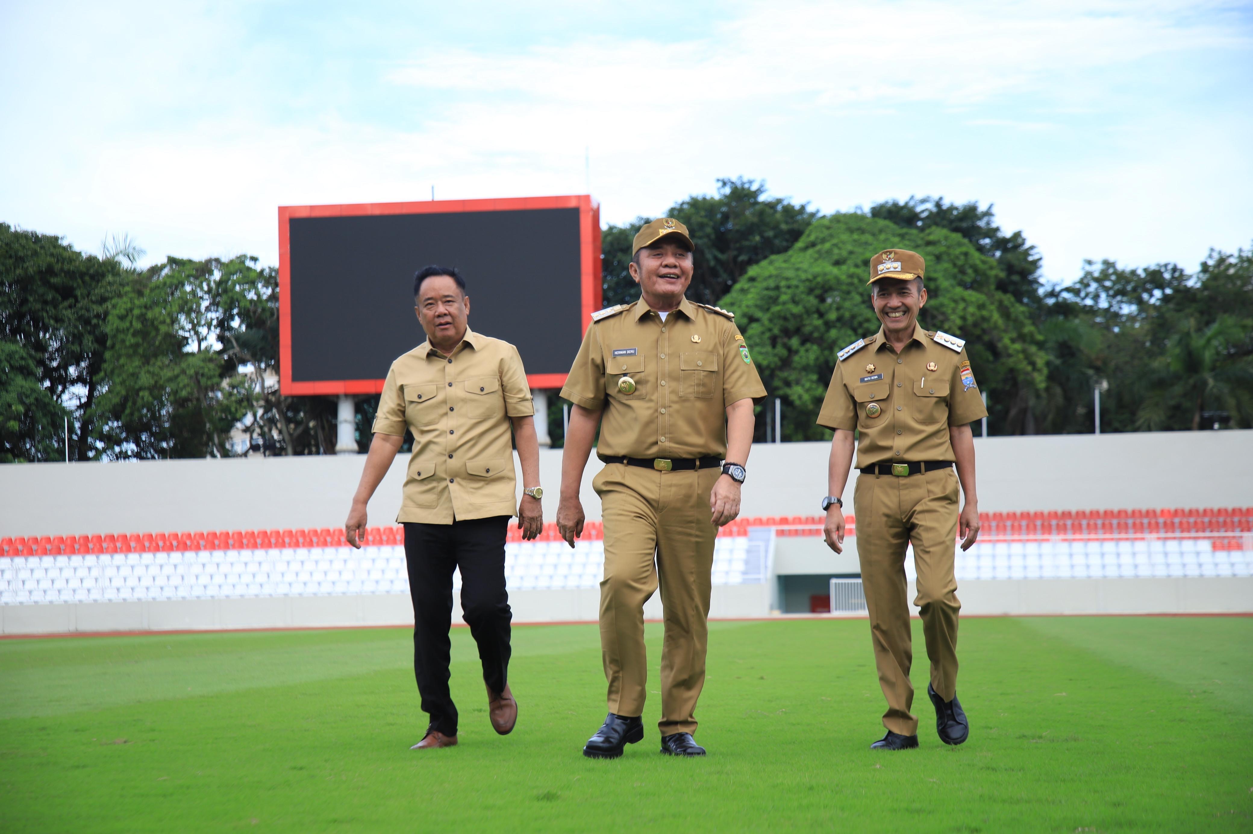 Gubernur Sumatera Selatan (Sumsel) Herman Deru didampingi Wakil Gubernur (Wagub) Cik Ujang dan Walikota Palembang Ratu Deru hadiri secara virtual pada peresmian renovasi dan pembangunan 17 stadion di Indonesia oleh Presiden RI Prabowo Subianto, secara virtual bertempat di Stadion Bumi Sriwijaya Palembang, Senin (17/03/25) sore.