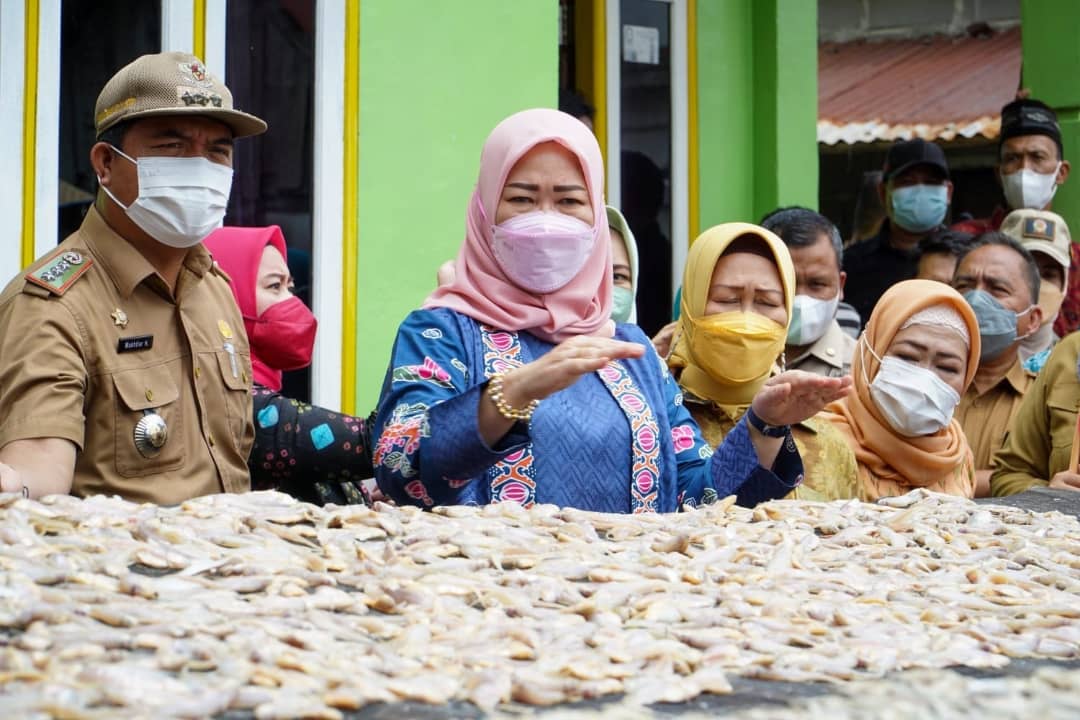 PALEMBANG- Ketua TP PKK Sumsel Febrita Lustia HD terus berupaya memberikan bantuan permodalan bagi pelaku usaha ikan asin di kampung SIABANG yang terkonsentrasi di kawasan 5 Ulu, Jalan KH. Azhari, Lorong Keramat.