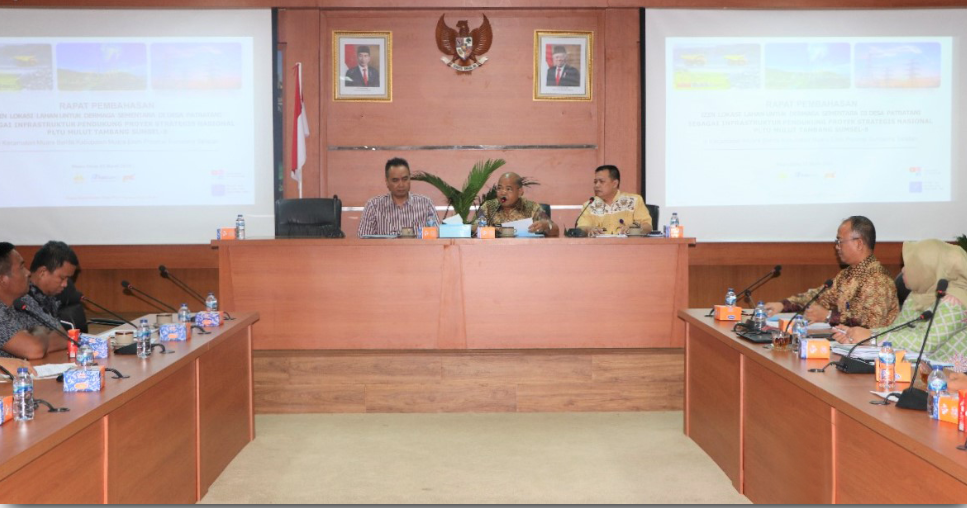 KORDANEWS – Sekretaris Daerah Kabupaten Muara Enim, H Hasanudin pimpin langsung Rapat Pembahasan Izin Lokasi Lahan untuk Jetty Pelabuhan Sementara PT Solid Pelayanan Indonesia (PT PSI) di Desa Patratani, Kecamatan Muara Belida, Kamis Sore (05/03) di Ruang Rapat Serasan Sekundang Muara Enim. Saat memimpin rapat, Sekda mengatakan, PLTU Mulut Tambang Sumsel-8 ini merupakan Proyek Strategis Nasional (PSN) yang akan menjadi aset besar Indonesia yang berdampak baik bagi pertumbuhan ekonomi Indonesia terutama di Sumatera Selatan. Untuk itu, segala hal yang menjadi kendala atau penghambat pembangunan ini agar segera di selesaikan, terutama untuk pembangunan pelabuhan sementara yang belokasi di Desa Patratani, Kecamatan Muara Belida.