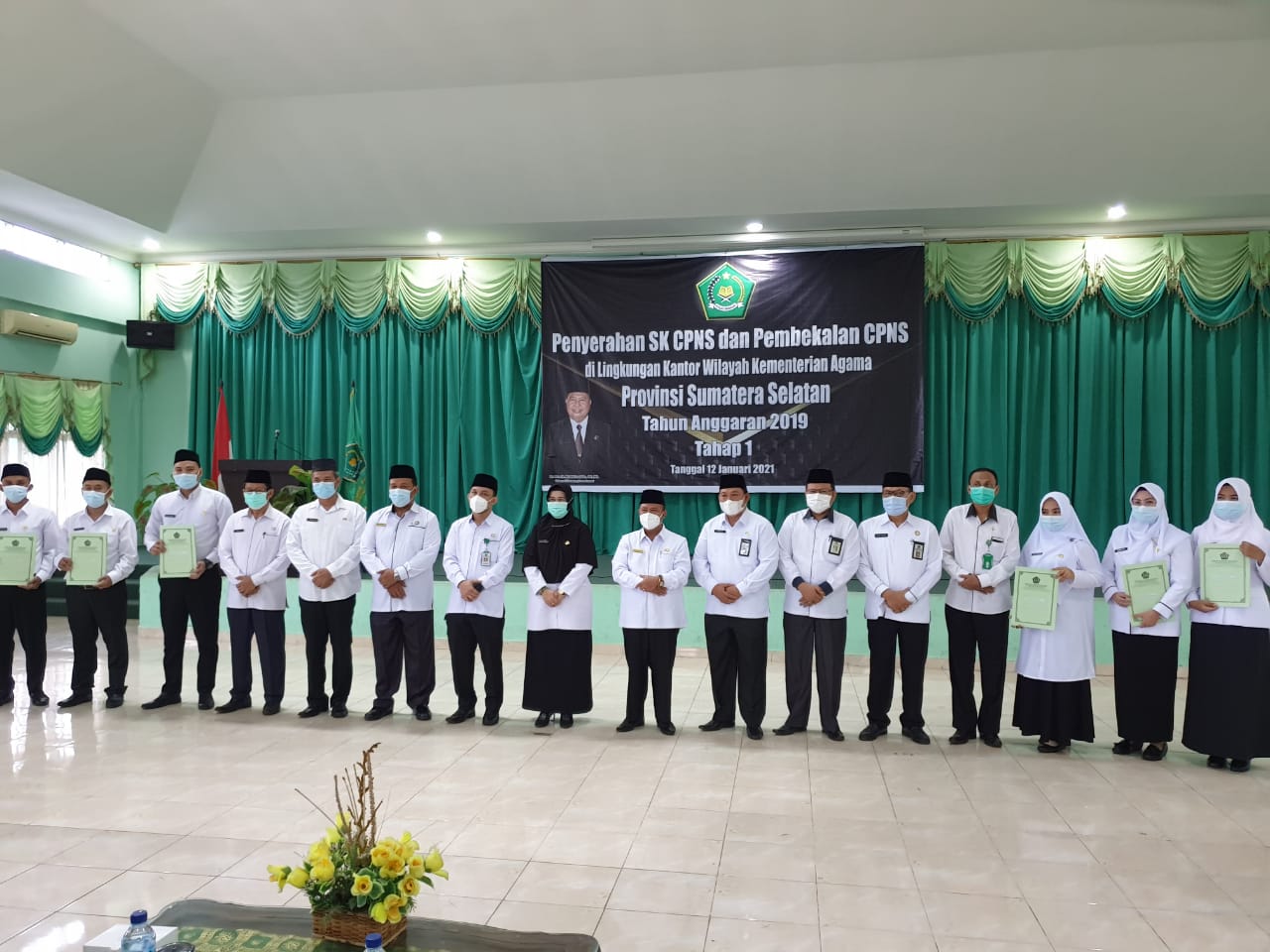 Kepala Bagian Tata Usaha Kanwil Kemenag Sumsel H. Abadil S.Ag, M.Si dalam laporannya menjelaskan, CPNS yang menerima SK hari ini merupakan peserta seleksi CPNS Formasi Tahun 2019.