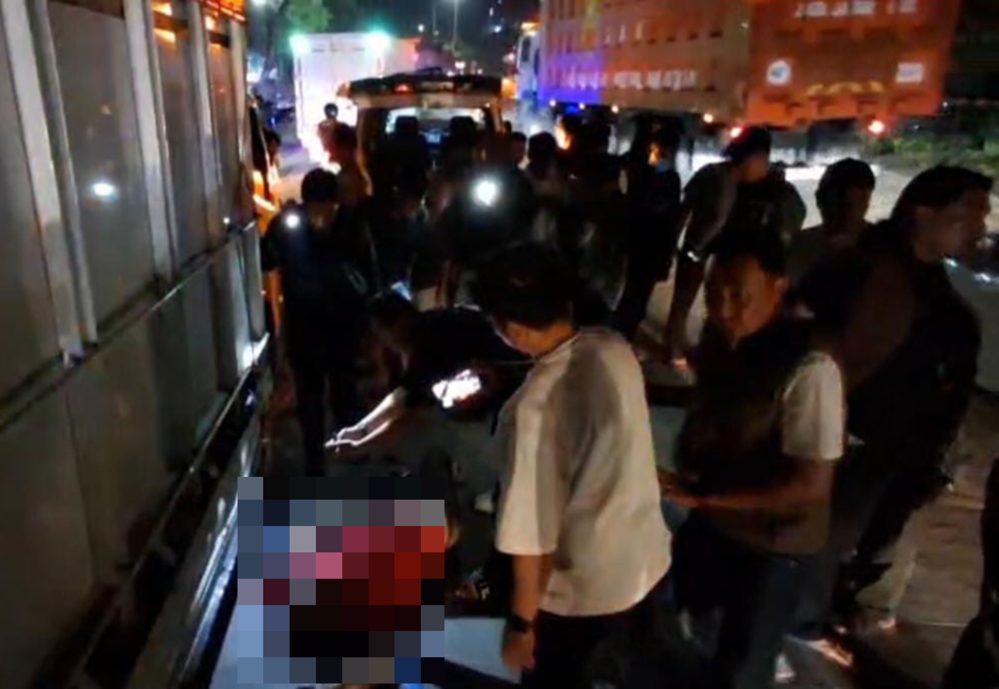Dari pantauan di lokasi, warga tampak berkerumun menyaksikan tubuh korban yang tergeletak tidak jauh dari truk putih bernomor polisi BE 8139 CW yang ia kemudikan.