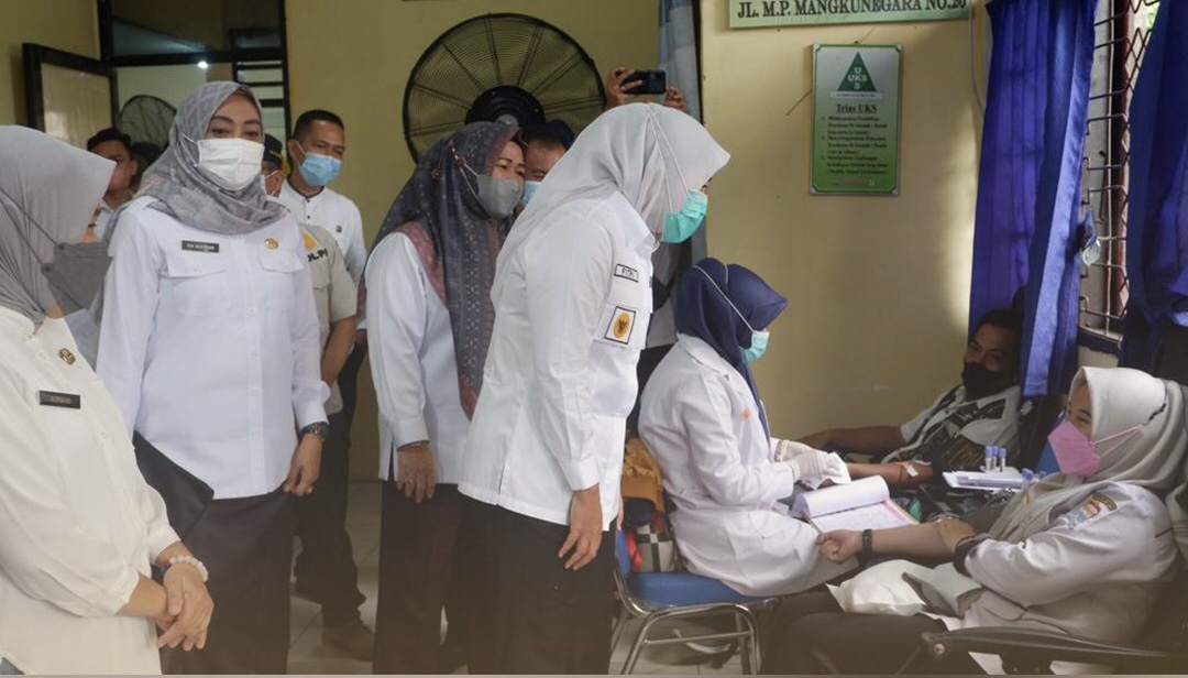 Wakil Wali Kota Palembang Fitrianti Agustinda, yang juga Ketua PMI Palembang, meninjau pelaksanaan donor darah di Kecamatan Ilir Timur Tiga, Rabu (23/3/2022).
